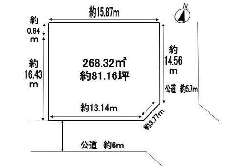 建築条件なし土地! 土地面積約81坪! 南東の角地! 現況更地!