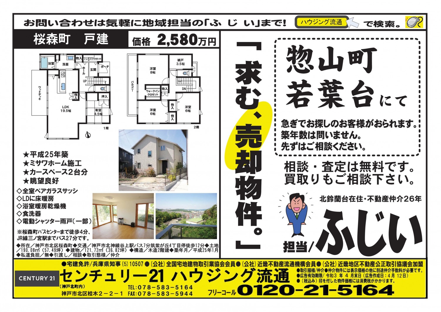 WEBチラシ詳細 2021年04月13日公開 北鈴蘭台 宅配チラシ<裏> (4月12日発行) 北鈴蘭台 宅配チラシ<裏> (4月12日発行) クリックすると、大きな画像でご覧いただけます。 このチラシの関連物件一覧 兵庫県神戸市北区桜森町 2,580万円 一戸建 4SLDK オススメ成約商談中