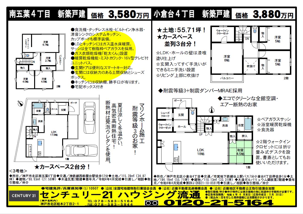 WEBチラシ詳細 2022年05月31日公開 北鈴蘭台 宅配チラシ (5月30日発行) 北鈴蘭台 宅配チラシ (5月30日発行) クリックすると、大きな画像でご覧いただけます。 このチラシの関連物件一覧 兵庫県神戸市北区南五葉... 3,480万円 一戸建 4LDK オススメ成約 兵庫県神戸市北区小倉台... 3,880万円 一戸建 4LDK 成約