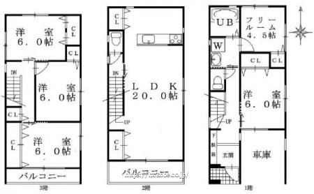 南向きの3階建て! 日当たり・通風良好!